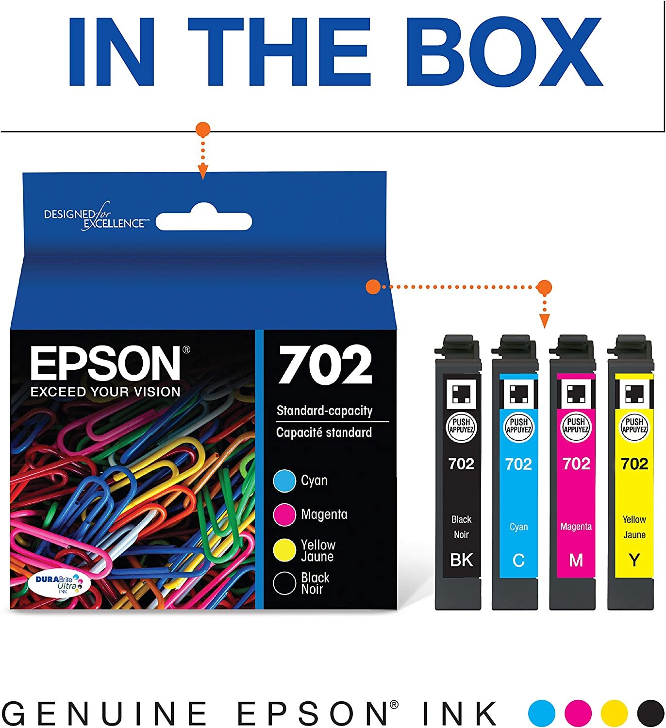 - Epson printing system is designed to be used exclusively with Epson Genuine Cartridges. Use of non-genuine ink could cause damage not covered under the printer’s ltd. wnty.